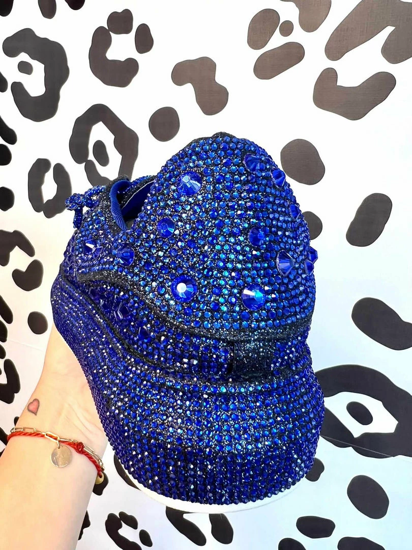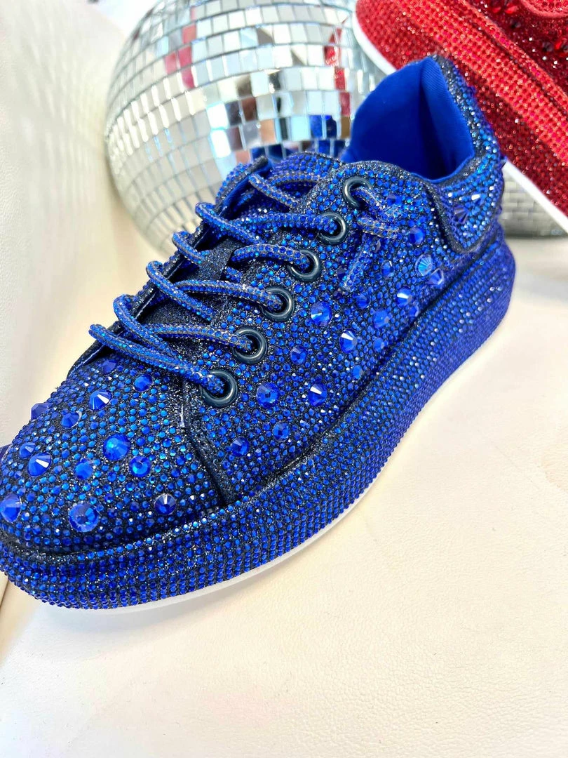 The Azela Wang “Glittery Midnight Chic” Flat Sneaker in Blue is a total show stopper! These glitter sneakers are perfect for adding some pizzaz to casual outfits! Complete with a rounded toe and low cut collar. Perfect Fourth of July accessory for the patriotic chic!