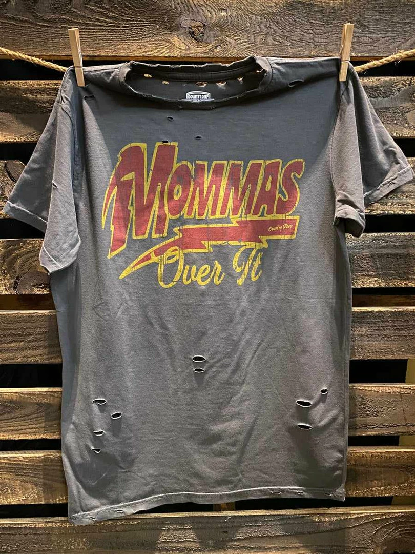 Momma’s Over it distressed unisex T shirt available in faded black