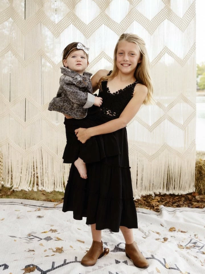 Long, flowy, and too cute! You are bound to fall in love with the Girls Southbound Dress! This ’80s inspired tiered ruffled dress is made for twirling. Trust us… we couldn’t help ourselves either and neither will you. It features a scoop neckline, cross-back adjustable spaghetti straps, and beautiful floral applique details. It’s the most ideal dress for summer fun!