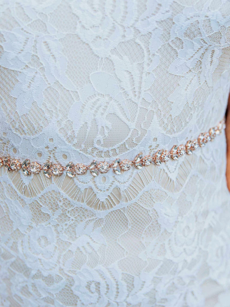 Luxe Apparel Sale! Glistening Rhinestone Flower Belt With Black Sash – Rose Gold