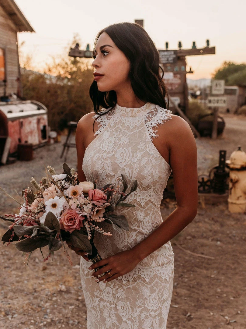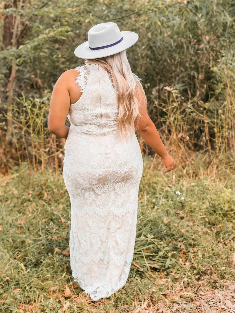 Our To Have and To Hold Lace Dress – Ivory is the perfect dress to bring in the spring season! This long dress features a high neckline with a zipper back closure. This dress is fully lined with an ivory lace overlay, a neutral tone lining, and see-through lace cap sleeves. This dress is also very form-fitting!