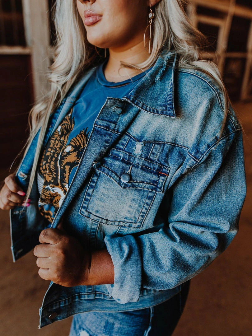 WOW! Our “SFC Denim Jacket” is available in dark wash and light wash with the softest denim! This jacket has STRETCH and is a cropped fit. Perfect for any body type. Part of the Chics Collection and Curvy Chic Certified with sizes XS-3XL! Designed by our owner Liz. Manufactured by Southern Fried Chics.