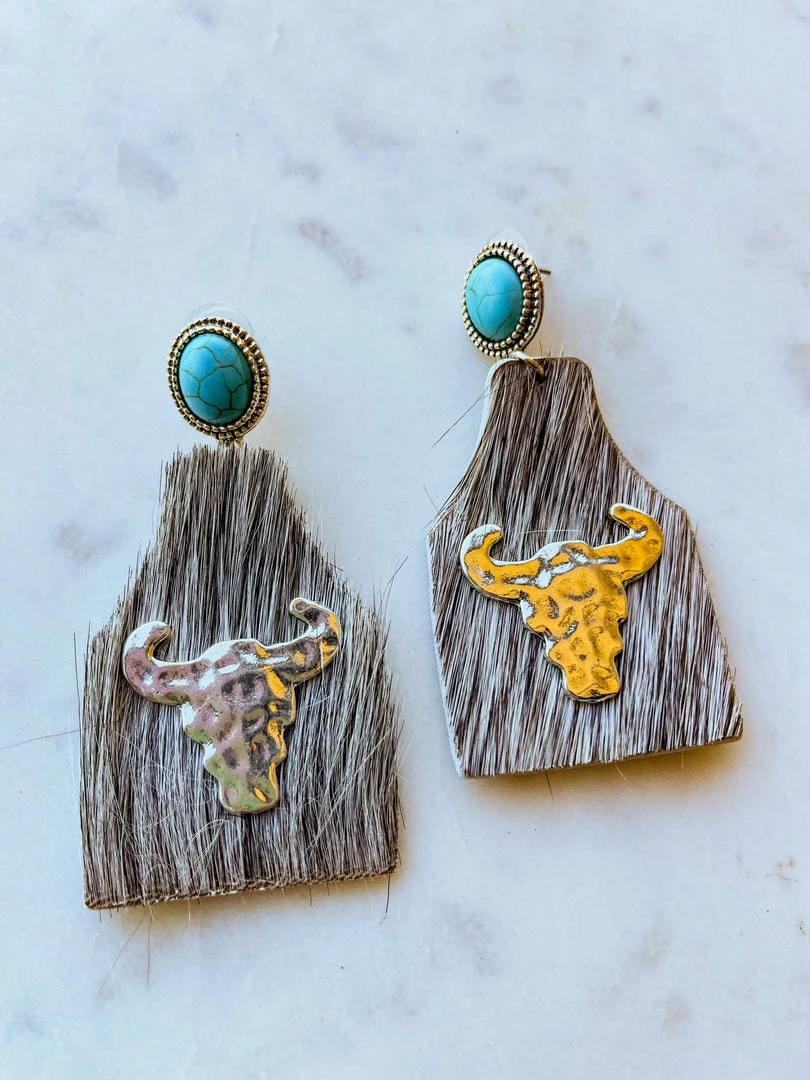 Southern Grace New Arrivals Take A Number Cowboy CowSkull Earrings – White
