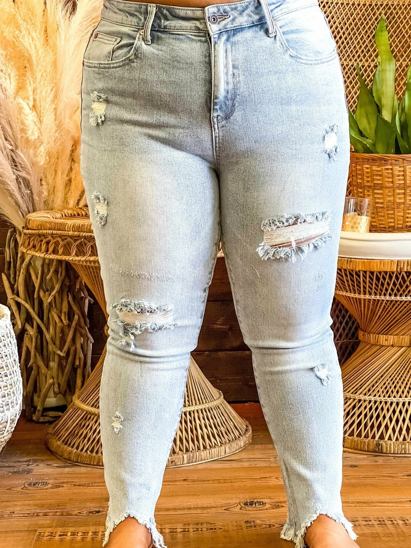 Special A Summer Fever Collection Mid Rise Relaxed Skinny Distressed Jeans In Light Blue